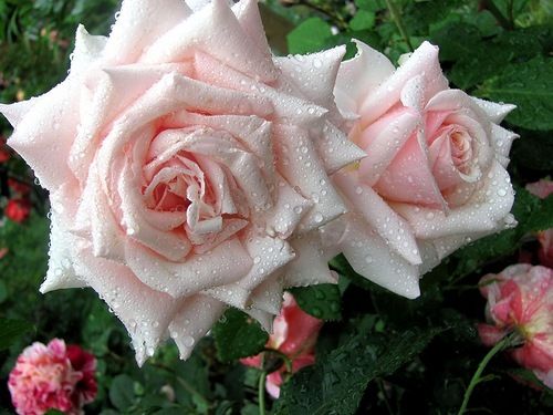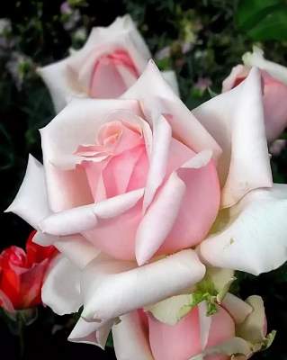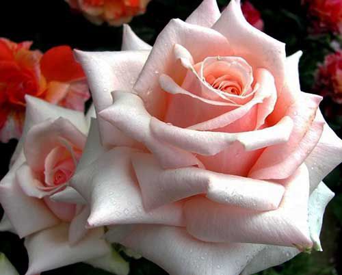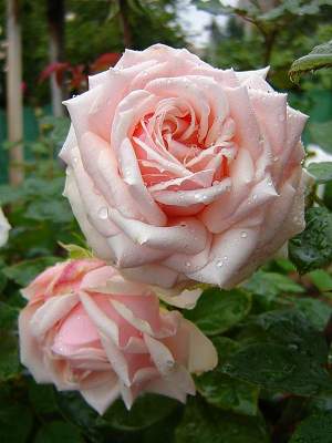 Роза чайно-гибридная Barbados (Барбадос). Бутон плотный, высокий, нежно-розовый, открывается постепенно, в полном роспуске светло-розовые крайние лепестки обрамляют более тёмную серединку и складываются уголком. Серединку не показывает. Цветы крупные, с лёгким ароматом, хорошо переносят дождь и солнце. Куст компактный, с темно-зелёной глянцевой листвой.