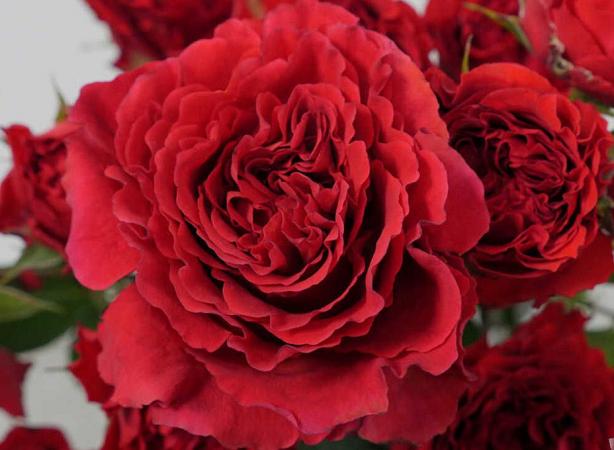 Роза Bella Linda Brick (Белла Линда Брик). Спрей-роза. Цветки диаметром 7 см, махровые, красные, в соцветиях по пять шт. Очень красиво сложены. Аромат нежный, приятный. Цветение обильное, повторное, в течение сезона. Листва очень устойчивая к чёрной пятнистости и мучнистой росе. Куст высотой 80 см. Подходит для срезки.