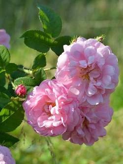 Роза Belle Amour (Бэль Амур). Цветы нежно-розовые, выгорают до серебристо-розового, полумахровые, в форме чаши (20-30 лепестков), по форме напоминают камелию, при раскрытии показывают желтые тычинки, цветки очень красивой формы, запах типично розовый, сильный, листья темно-зеленые, матовые.