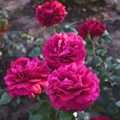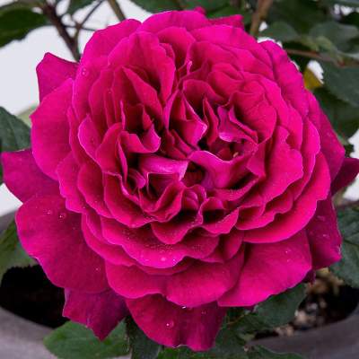 Роза чайно-гибридная Bellevue (Бельвью). Сказочной красоты роза из серии Eleganza. Цветки бархатистые, красно-пурпурные, махровые (40 лепестков). Бутон тёмно-красный, бокаловидный, цветок пурпурный, чашевидный, с высоким центром, в роспуске становится розетковидным. Диаметр цветка до 12 см. Аромат лёгкий.