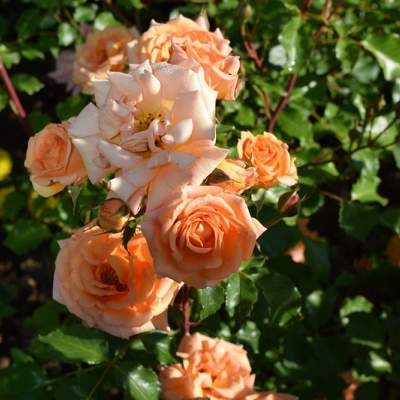 Роза Bentheimer Gold (Бентгеймер Голд). Цветки диаметром 8 см, махровые, абрикосово-оранжевые. Цветение обильное повторное.