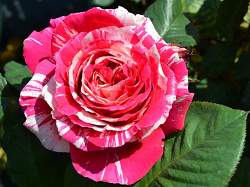 Густомахровая чайно-гибридная роза с очень прочными крупными цветками. Розовые полосы особенно сильно проявляются при полном раскрытии цветка. Цветоносы сильные, средней длины, несут по 1-2 цветка. Куст прямостоячий, с крупной, очень плотной, тёмно-зелёной листвой. Аромат слабый. Размер цветка 8-10 см. Высота растения 80-120 см. Повторное цветение.