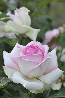 Очень элегантная классическая чайно-гибридная роза, компактная и ветвистая. Очень быстро нарастает, и благодаря этому цветет все лето.