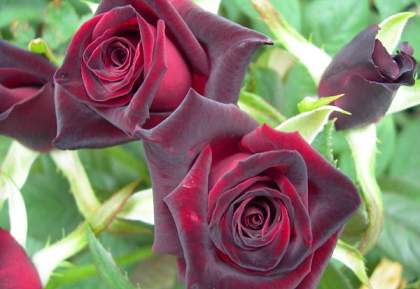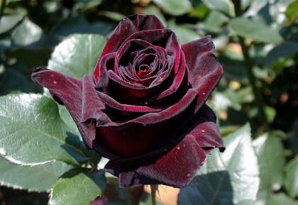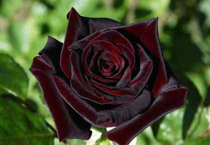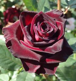 Роза чайно-гибридная Black Baccara (Блэк Баккара). Этот сорт максимально приближен к чёрному цвету. Цветы в бутонах имеют четко выраженный чёрный цвет. В летнее время роза вас порадует тёмно-бордовыми бархатистыми оттенками. При наступлении осенней прохладной погоды цветы приобретают яркий чёрный отлив.