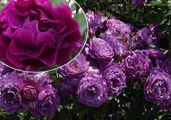 Уникальная роза! Цветки полумахровые, в форме камелии, сиренево-пурпурные, лепестки волнистые. Аромат умеренный, сладкий, цветущих цитрусовых и розы.