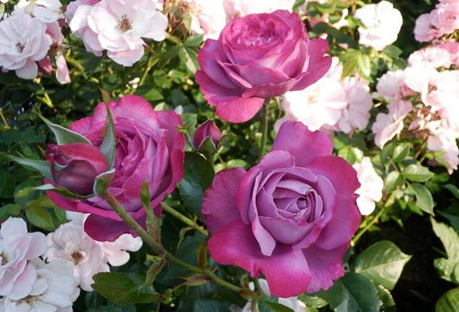 Роза Blue River (Блю Ривер). Цвет очень необычный и привлекательный — бледно-лавандовый с малиновыми краями лепестков. Еще лучше ее великолепный аромат. Цветки густомахровые, с закрученными лепестками, шаровидной формы, обычно появляются по одному либо в кистях по 2-5, в большом количестве, на густом, ветвистом, сильном растении.