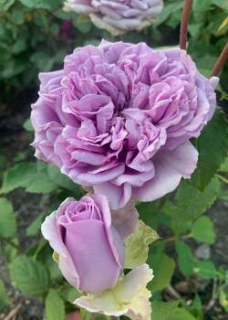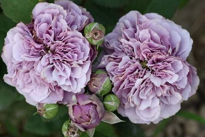 Роза Blue Romanesque (Блу Романеско). Новинка японской селекции. Чайно-гибридная роза с цветками необычного цвета — они сиреневые с пепельным оттенком. Густо-махровые с волнистыми лепестками, диаметром 8 см. Аромат легкий. Цветет повторно в течение сезона.