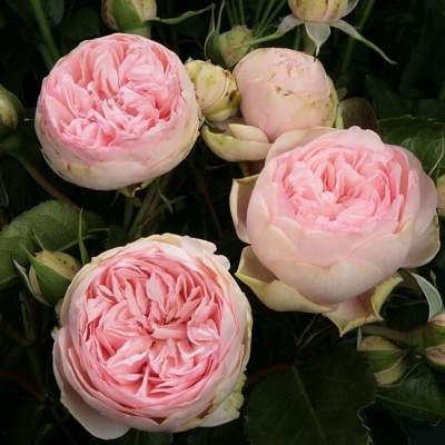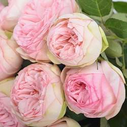 Роза Bridal Piano (Брайдал Пьяно). Имеет одновременно признаки спрей-розы и чайно-гибридной розы. Цветоносы крепкие, прямые, длинные. Соцветие образовано из 3-5-ти смотрящих вверх шаровидных бутонов. Цветы ностальгической формы. Наружные лепестки молочно-белые с зеленоватой каймой, внутренние нежно-розовые. Центр цветка имеет более насыщенную розовую окраску. Цветок медленно распускается и долго держится на стебле.