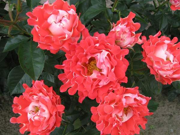 Роза Candy Ruffles (Кэнди Раффлз). Знаменита необычным внешним видом цветков, а именно изрезанными лепестками на бутонах. Кроме того, у этой розы необычный цвет, который сочетает в себе коралловый и бежевый оттенки. Форма цветка характерна на протяжении всего периода цветения, будь то только раскрывающийся бутон, или же отцветающий цветок.