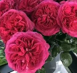Роза Capability (Капабилити). Большие цветы из 115 лепестков имеют глубоко-чашевидную форму, окрашены в богатые малиновые тона и обладают средним ароматом розы с пикантными нотками специй. Очень хороша как роза для срезки, в вазе стоит до 9 дней. Высота куста 70 см, листья здоровые, цветете весь сезон.
