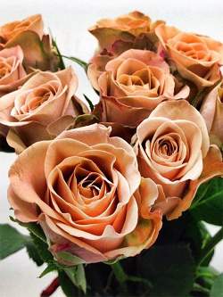 Роза Cappuccino (Капуччино) имеет цветки густомахровые, великолепного сложения, благородной формы, диаметром 8 см, тёплого, приятного тона (от кремово-жёлтого до кофейно-жёлтого).