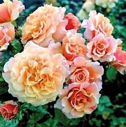 Роза Caramella (Карамель). Очень выносливый, сильнорослый и обильноцветущий сорт с светло-янтарно-жёлтыми густомахровыми, иногда квартированными цветками. Листва крупная, блестящая, густая. Куст прямостоячий, ветвистый, до 120 см. Подходит для размещения солитерно или небольшими группами.