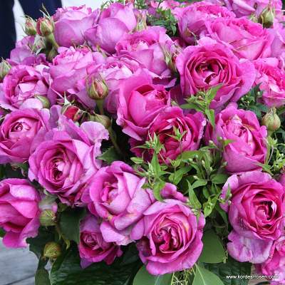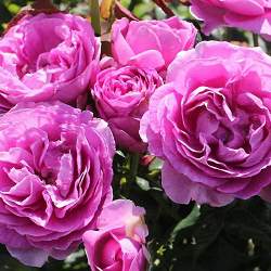 Роза флорибунда Carmen Wurth (Кармен Вюрт). Роза с потрясающим ароматом цитрусовых и фруктов. Особенно сильно благоухает в полуденные часы и вечером. Цветки 8 см в диаметре, розовые с пурпурным оттенком. Собраны в гроздья по несколько штук.