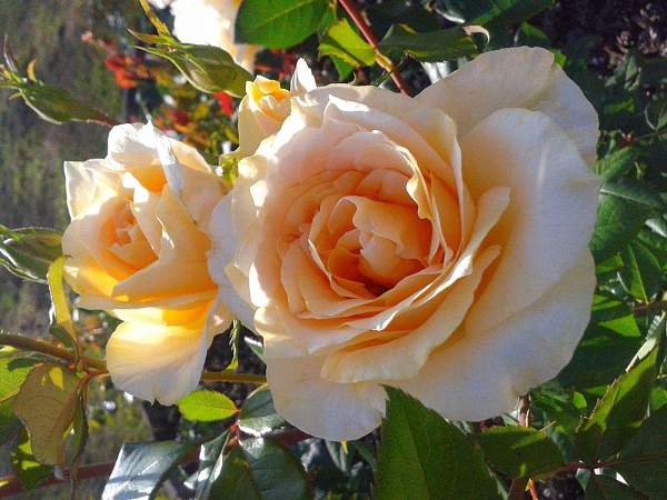 Листья темно-зеленые, кожистые, блестящие, красивые, здоровые. Шипы крупные, крючковидные, редкие. Кусты сильнорослые (до 90 см), прямые, с прочными красно-бурыми побегами. Зимостойкий. Для срезки.