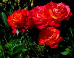 Красный край в роспуске увеличивается и роза становится бархатисто-красной. Хорошо держит дождь и жару, не теряет форму в процессе отцветания. Цветки на побегах как одиночные, так и в небольших соцветиях.
