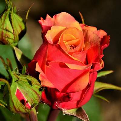 Роза чайно-гибридная Cherry Brandy (Черри Бренди). Чайногибридная роза необычного цвета. Куст сильнорослый, прямостоячий, компактный, высота 70-90 см. Листья темно-зеленого цвета, блестящие. Цветы имеют форму бокала, крупные, 8-10 см в диаметре. Внутренняя сторона лепестков имеет оранжевый цвет, внешняя сторона винно-красная.