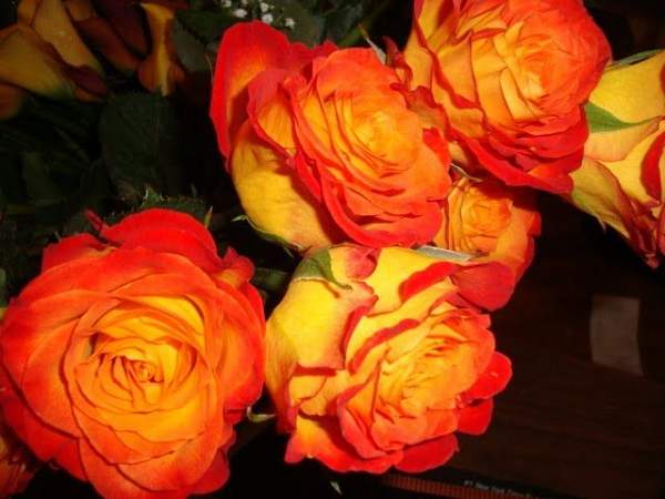 Роза Circus (Циркус) имеет оранжевые цветки с красноватыми краями и розоватым оттенком, когда цветки только раскроются, а затем выгорают до жёлтых. Размер цветка 7-8 см. Появляются в кистях по 3-11 шт. Аромат слабый. Хорошо выдерживает дождь и солнце.