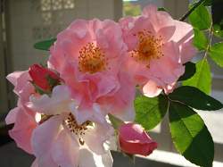 Бутоны коралловые, раскрывшись – лососево розовые. Позднее бледно-розовые. Оборотная сторона лепестков всегда темнее. Цветки слегка чашевидные, появляются в небольших кистях, обычно по 3-7 шт, со сладким ароматом. Молодой прирост бордовый, сорт достигает 200-400 см в высоту. Подвержен мучнистой росе и черной пятнистости, но это оттолкнет только самых привередливых садоводов, т.к. роза растет и цветет вне зависимости от этих повреждений.