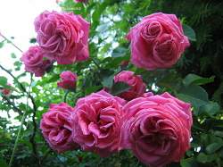 Роза Climbing Ballet (Клаймин Баллей). Роскошный клайминг с крупными темно-розовыми слегка поникающими цветками (диаметром до 13 см). Цветки махровые (55 лепестков). Цветение обильное, повторное.