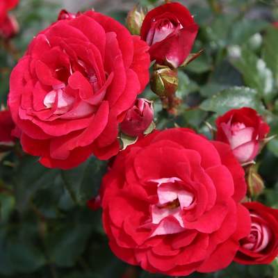 Роза Corazon (Коразон). Карликовая роза, новинка 2020 года фирмы W. Kordes' Söhne из коллекции Lilliputs. Цветки диаметром 4-5 см, махровые (17-25 лепестков), красные с серебристой обратной стороной лепестков, собраны в густые соцветия. Аромат легкий.