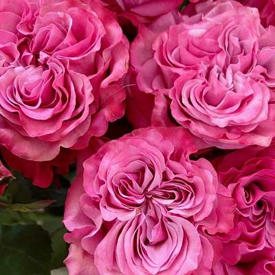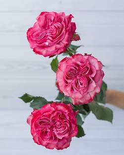 Роза Country Blues (Кантри Блюз). Цветок восхитительного сложения. Крайние лепестки темно-розовые, в середине пыльно-розовые, размер махрового, плотно набитого цветка до 10 см. Ароматная. Куст стройный, высота до 120 см, диаметр около 60 см. Листья глянцевые. Здоровая, устойчивая, великолепна в срезке. Цветение почти непрерывное.