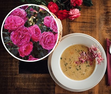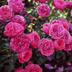 Роза Dolce (Дольче). Цветки чашевидные, ярко-розовые, диаметром 6 см, интенсивного малинового цвета. Куст среднего размера, высотой до 50 см. Ветви сильные и прямостоячие, на каждой плотная гроздь махровых цветков. Обильно цветет на протяжении всего сезона. Сорт устойчив к болезням и жаре. Цветки с приятным фруктовым ароматом и сладким вкусом красной смородины. Куст можно содержать в вазонах.
