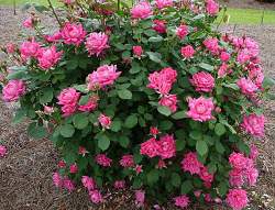 Ярко-розовая версия сорта Double Knock Out (Дабл Нок Аут). Цветки полумахровые (15-18 лепестков), ярко-розовые, в соцветиях. Аромат лёгкий пряный.