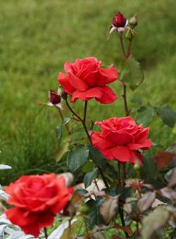 Махровые цветки этой невысокой розы имеют прекрасную форму, удлиненные, ярко-красные бутоны распускаются в крупные бокаловидные цветки с ярко-кораллово-красной окраской и появляются уже в начале лета. Роза изумительно смотрится в срезке.