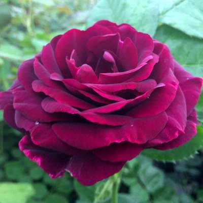 Куст компактный с темно-зеленой листвой, устойчивой к заболеваниям. Цветки очень крупные — 12 см. Другое наименование: Purple Eden (Пёпл Эден).