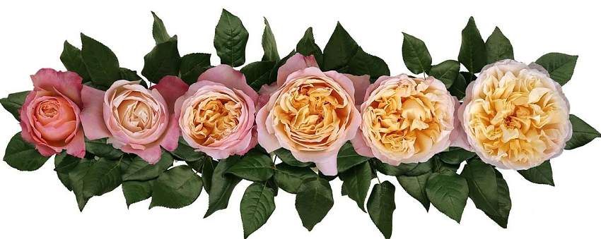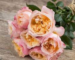 Роза Edith (Эдит). Срезочный сорт с крупными яркими цветами, обладающими интенсивным фруктовым ароматом. Центр каждого цветка имеет цвет старого золота с персиковыми тонами и чётко отделён наружными розовыми лепестками, что создаёт впечатляющий эффект. Листья глянцевые, с зубчатыми краями, состоят из 5 листовок в середине стебля.