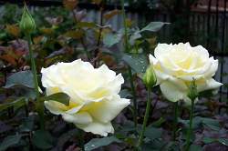 Роза Elina (Элина). Цветки классической формы с элегантно отогнутыми лепестками, появляются по одному на длинных побегах. Окраска меняется в зависимости от погоды и климата. В родной Ирландии цветки лимонно-желтые, по краям выгорают до кремовых. В более жарких условиях они обычно кремовые или чисто-белые. В центре цветка окраска самая интенсивная. Роза достойная кисти художника.
