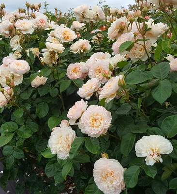 Куст сильный, пряморослый, густой, высотой 120 см и шириной 105 см. Листва устойчивая к заболеваниям. Цветение в течение сезона.