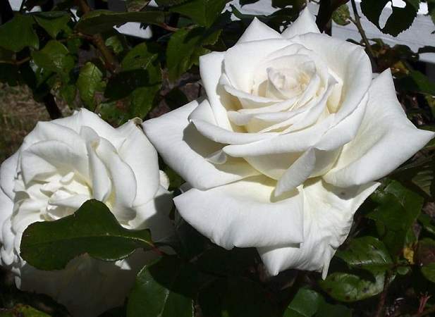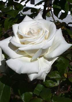 Роза Evening Star (Ивнинг Стар). Цветки крупные (10 см), бокаловидные с высоким центром. Лепестки уложены по спирали. На концах стеблей по одному или по два-три. Цветок распускается долго и очень долго держится. Окраска очень привлекательная — по периферии лепестки белые, в центре бледно-желтые. Хорошо стоит в срезке. Имеет приятный аромат.
