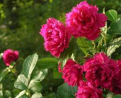 Роза F.J. Grootendorst (Эф Джей Грутендорст). Цветки махровые, карминово-красные, с зубчатыми краями лепестков, поэтому сорт иногда называют "гвоздичной розой", устойчивы к дождю. Крупные соцветия.