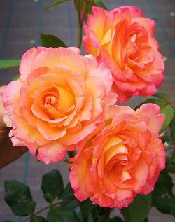 Роза Fairest Cape (Фейрест Кейп). Новая чайно-гибридная роза очень яркой окраски. Завоевала золотую медаль в Баден-Бадене в 2004 г. Цветки абрикосово-желто-оранжевые, появляются обычно в кистях по 4-6 шт, густомахровые, очень ароматные. Листва темно-зеленая, густая. Куст ветвистый, достигает 80 см в высоту.