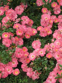 Роза Ferdy (Ферди). Ferdy — потрясающая роза, у нее лишь один недостаток — она цветет только один раз. Цветение, тем не менее, длительное и впечатляющее: куст полностью покрыт цветками — это, пожалуй, одна из самых обильноцветущих роз. Цветки изящные, полумахровые, кораллово-розовые, затем темнеют до красных (особенно в жаркую погоду).