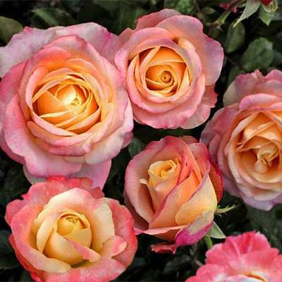 В серию "Holiday Island Roses" от Interplant Roses B.V. (Нидерланды) собраны компактные чайно-гибридные розы с широкой цветовой гаммой и большими цветками, постоянноцветущие, с отличным приростом, пригодные для контейнерного выращивания.