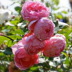 Цветок тёмно-розовый, насыщенный аромат старинных роз. Цветение флэшами на протяжении всего сезона. Другие наименования (синонимы): AUSfin.