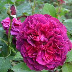 Побеги жесткие, колючие, листва слегка блестящая, темно-зеленая. Куст прямостоячий, ветвистый, достигает 100-120 см в высоту. Великолепен в миксбордере, особенно в сочетании с белыми цветами или серебристой листвой, которая оттенит крупные темно-красные цветки. Эта красивая роза лучше чувствует себя в сухом жарком климате. Применяйте профилактику против заболеваний.