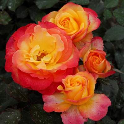 Цветение повторное, в течение всего сезона. Аромат мягкий, умеренный, с нотами фруктов. Куст компактный, вертикально растущий, высотой 80 см, шириной около 40 см, с плотной, полуглянцевой, тёмно-зелёной кожистой листвой, устойчивой к болезням.