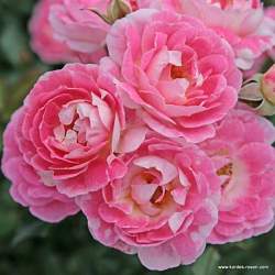 Роза Flirt (Флирт). Этот обильно и продолжительно-цветущий сорт заслуженно удостоен золотой медали. Прелестные светло-розовые цветы с резными лепестками и кремово-розовой изнанкой собраны в нарядные соцветия. Куст компактный, с глянцевой листвой. Этот здоровый и зимостойкий сорт может быть использован как горшечный.