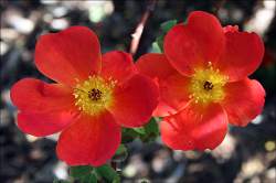 Роза Foetida Bicolor (Фетида Биколор). Роза получила своё название из-за двойного цвета лепестков. С внутренней стороны они алые, с внешней — жёлтые. Цветы имеют необычный запах. Цветение очень необычное и раннее. Кусты густые, раскидистые, с мелкой тёмно-зелёной листвой. Зимует без укрытия.