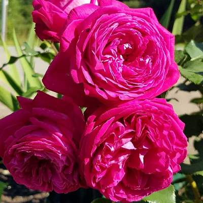 Роза Freifrau Caroline (Фрайфрау Каролин). Роза с необыкновенным ароматом и высокой устойчивостью к заболеваниям. Цветки махровые, диаметром около 8 см, тёмно-розовые с фиолетовыми оттенками, с сильным ароматом фруктов и герани (наибольшая интенсивность — в полдень и вечером).