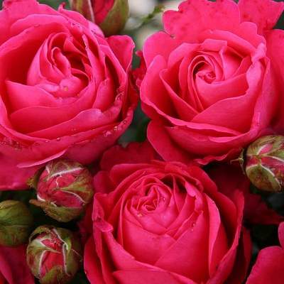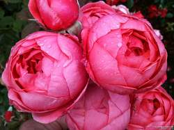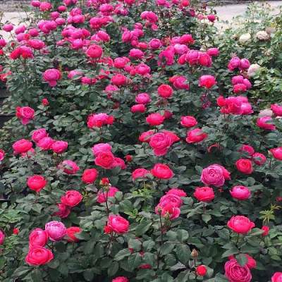 Роза Gartenprinzessin Marie-Jose (Гартенпринцессин Мари-Хосе) на штамбе 80 см. Цветки диаметром 5-6 см, махровые, шаровидные, розово-красные. Аромат сильный, фруктово-цветочный, наиболее интенсивно проявляется утром и вечером. Цветение повторное. Листва устойчивая к чёрной пятнистости и мучнистой росе. Куст стройный, вертикально растущий, высотой 80 см и шириной 40 см. Морозостойкость -34°C.