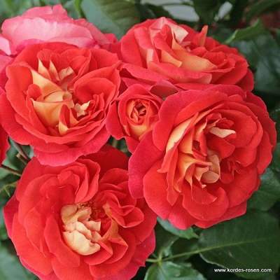 Аромат отсутствует или слабый. Цветки расположены в кистях. Куст прямостоячий. Цветение флэшами на протяжении всего сезона. Отличное сопротивление болезням. Другие наименования (синонимы): Brothers Grimm Fairy Tale, Eternal Flame (floribunda, Kordes 2002), Gremlin, Joli Tambour, KORassenet, TG2498.