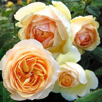 Листва темно-зеленая, кожистая, плотная. Цветение непрерывное, с июня по ноябрь, цветки одиночные или собраны в соцветия по 3-5 шт. Цветки медово-абрикосовые с более светлыми внешними лепестками, по мере распускания приобретают золотистый оттенок, чашевидные, махровые, диаметр цветка 8 — 10 см, обладают очень насыщенным фруктовым ароматом абрикоса с нотками персика, цитрусовых, чая и ванили, устойчив к неблагоприятным погодным условиям. Прекрасный сорт для посадки массивами. Необыкновенно элегантная и красивая на всех стадиях цветения.
