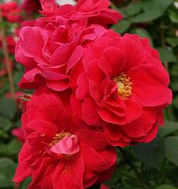 Роза George Vancouver (Джордж Ванкувер). Эту розу можно описать как улучшенную версию Champlain — более зимостойкую и более устойчивую к заболеваниям. Цветки раскрываются из малиновых бутонов. Они красные, позднее выгорают до темно-розовых. Появляются по одному или в небольших кистях (до 7 шт.), затем появляются красивые красные плоды.