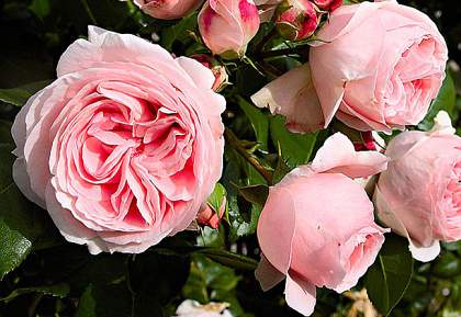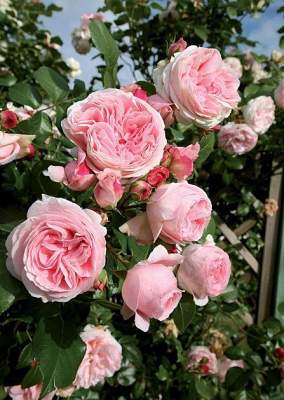 Роза плетистая Giardina (Джиардина). Роза из серии ностальгических. Крупные квартированные цветки чудесного нежно-розового (с сиреневым оттенком) цвета появляются в небольших кистях. Куст ветвится от самого основания, не оголяется снизу. Сорт очень устойчив к заболеваниям. Цветки с насыщенным фруктовым ароматом долго не увядают.