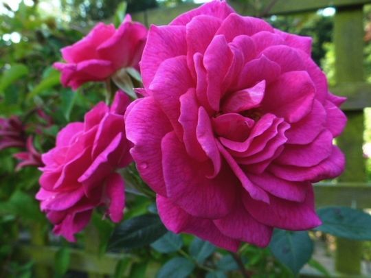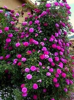 Роза плетистая Gloriana (Глориана). Плетистая роза патио — очаровательная, не слишком высокая, приятного цвета. Розетковидные цветки (17-25 лепестков) в сиреневых и фиолетовых тонах, собраны в соцветия.