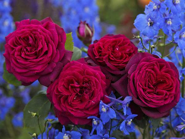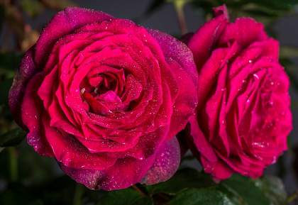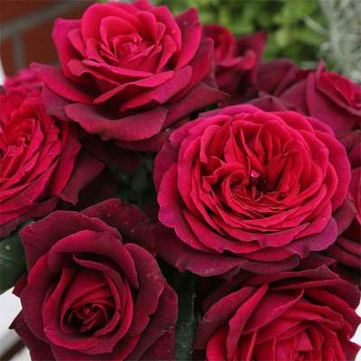 Роза Gräfin Diana (Графиня Диана). Эта роза названа в честь графини Дианы Бернадотт известной модистки, законодательницы современной шляпной моды. Сорт также является частью новой коллекции Кордеса PARFUMА. Цветки махровые, пурпурно-красные, бархатистые. Листва плотная, глянцевая, темно-зеленая. Крупный цветок, отменное здоровье, обильное цветение характеризуют этот сорт.